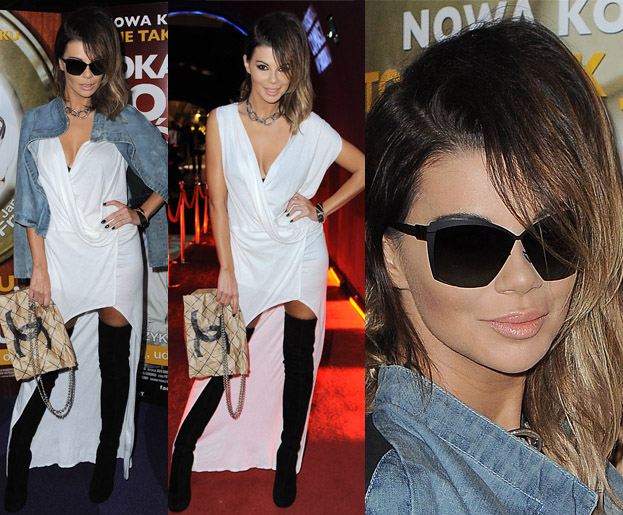 Kreacja Górniak wyglądała trochę jak owinięte wokół niej prześcieradło. Nie ratowały jej dżinsowe bolerko i wysokie, czarne kozaki. Do tego gwiazda zdecydowała się na torebkę z krzykliwym logo Chanel oraz zaczesane na bok, utapirowane włosy."